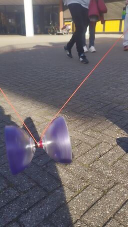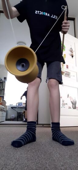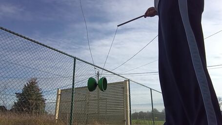 The diabolo will not always spin in a perfect angle. Don't worry, you can easily fix it by leveling the diabolo.