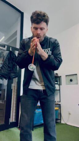 This trick was created by Ann Bubák and it has become very popular among yoyo players. Blow on the strings and add a clap for more style!