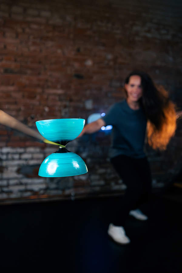 Stretching your dominant arm will help you aim the string to the center of the diabolo