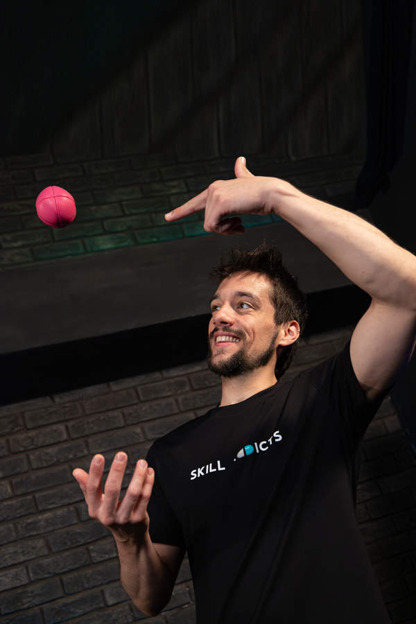 Vertical Throw is another essential juggling move. You throw a ball straight up and catch it with the same hand.